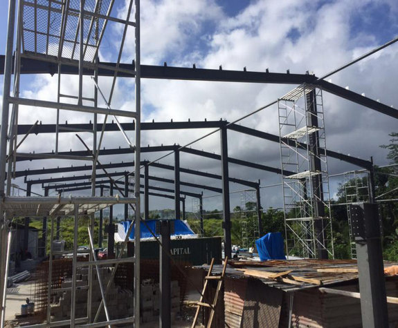 如今最通常門式剛架房屋鋼結構選用H型鋼作為主要構件材料制作。門式剛架在豎向均布荷載作用下,剛架梁與柱連接處、梁跨中處彎矩都較大。在水平荷載作用下,剛架角部也彎矩比較大,其他部位彎矩較小。既而可采用大變小截面的H型鋼,較等截面型鋼節約材料。