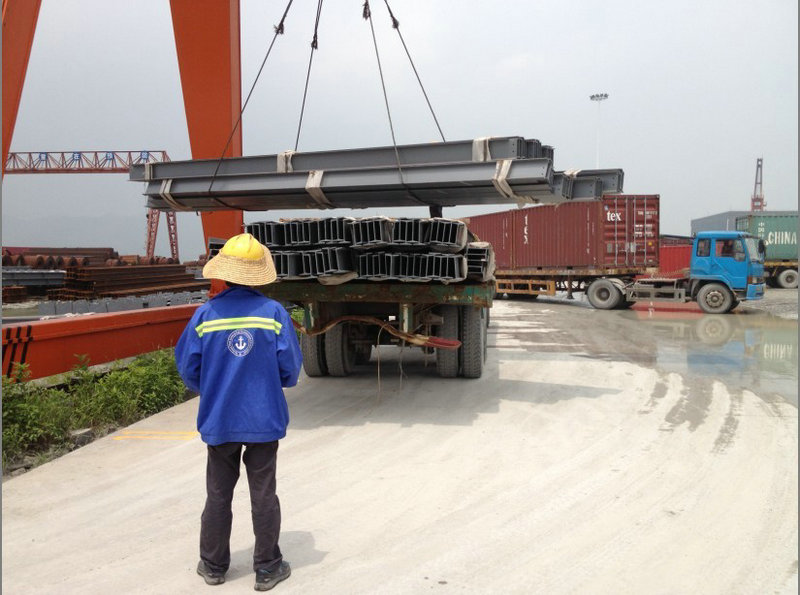 2)散貨船 特殊情況,某些大型建筑構件尺寸超過了40'HQ 和40'開頂柜的內部尺寸,此時我們建議客戶將大型建筑構件使用大卡車,平板拖車等由工廠吊運到碼頭,然后由碼頭吊運上大船,因此客戶在訂艙時要向船東訂散船艙位。我們將配合客戶,提供準確的貨物結構尺寸和重量,以便訂到合理的艙位。